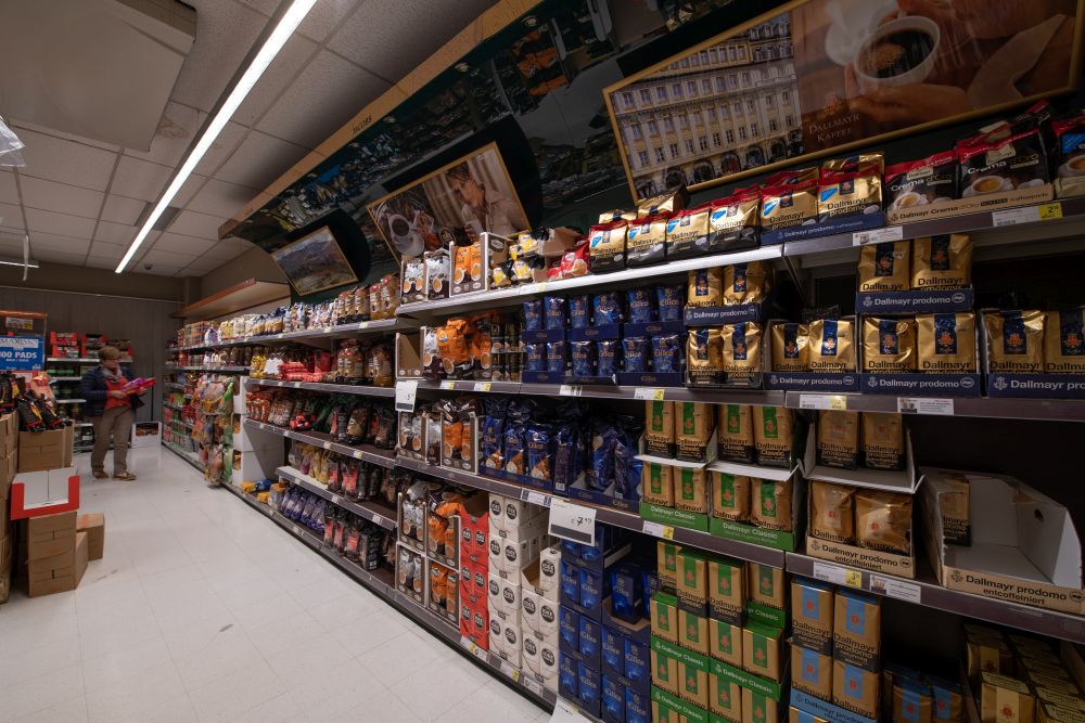 Mehr als 250 Sorten Kaffee erhält man hier. Alle gängigen deutschen und internationalen Marken in allen Verpackungseinheiten und für alle Zubereitungsarten sind ständig in großer Auswahl vorrätig.