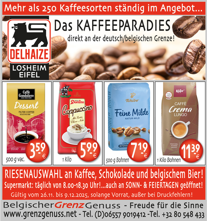 Cette semaine (26.11.2025 - 09.12.2025) sur l'offre de café de